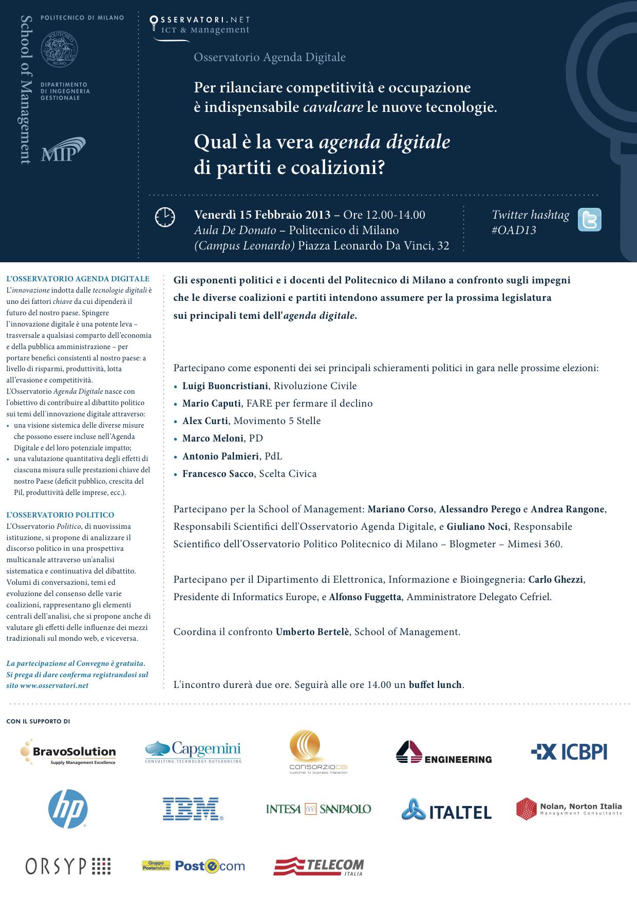 L’Agenda Digitale è un progetto internazionale, i temi sono definiti, è facile per una forza politica inserire nel proprio programma i punti programmatici di Agenda Digitale.