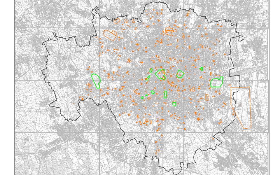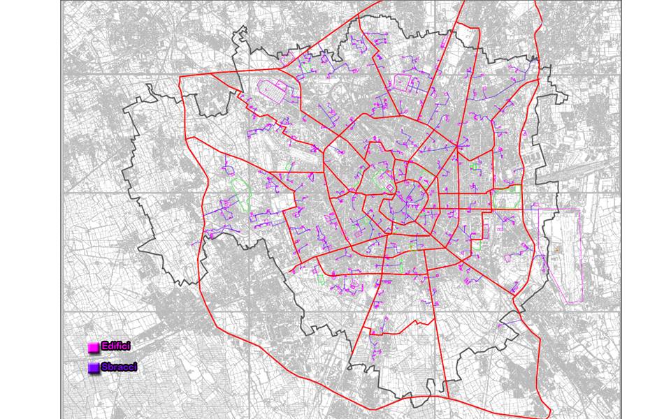 Siamo partiti dai 704 siti comunali del Pubblico Incanto del 2005. Sono stati localizzati sulla mappa cittadina. Sono stati individuati anche i parchi comunali e le aree a cielo aperto altamente frequentate in previsione della copertura Wi-fi (secondo obiettivo del progetto).